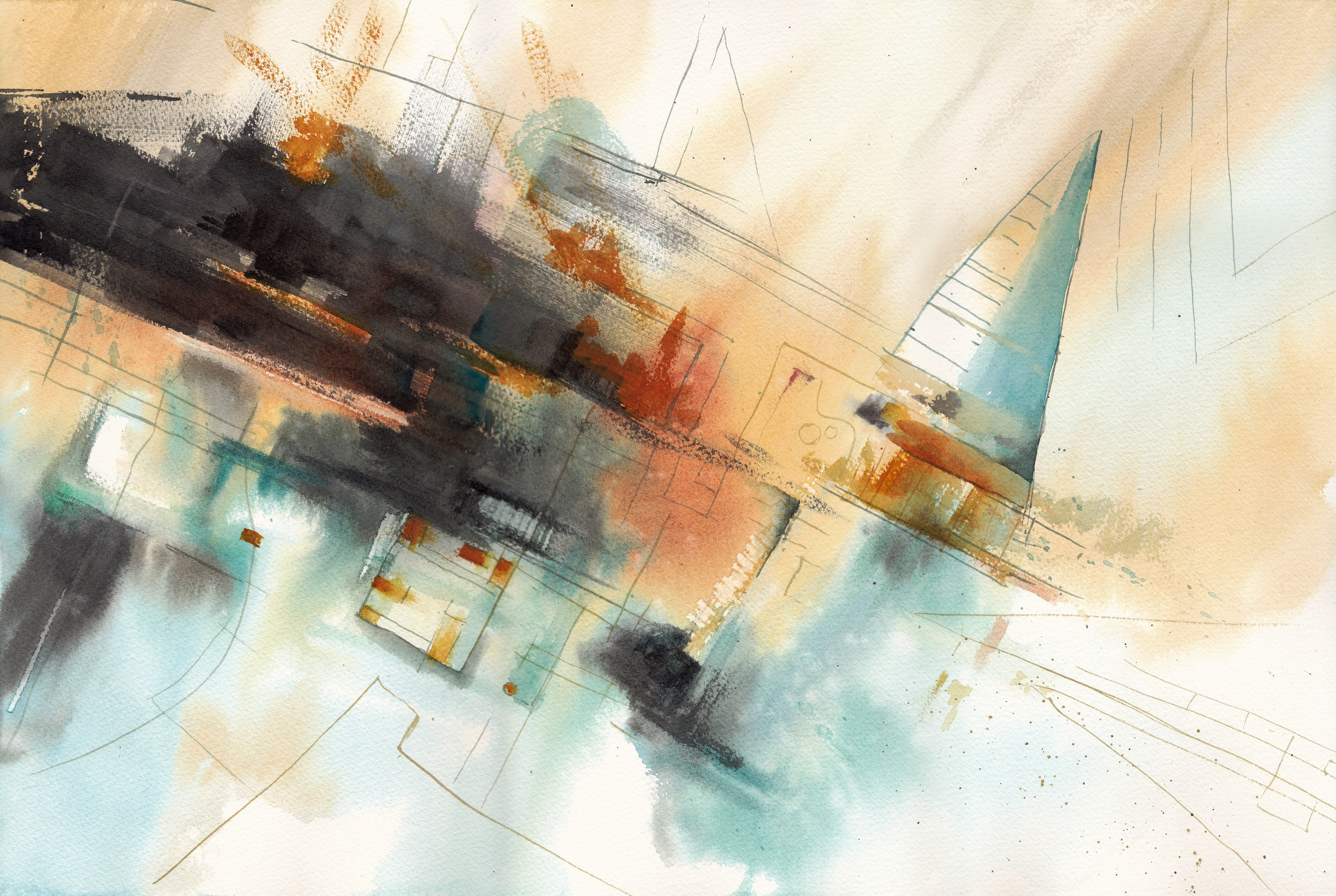 Watercolour abstract painting. 22x15" Saunders Waterford 140lb cotton paper using professional lightfast Winsor&Newton pigments. This painting is available for sale, please use the contact form for enquiries.