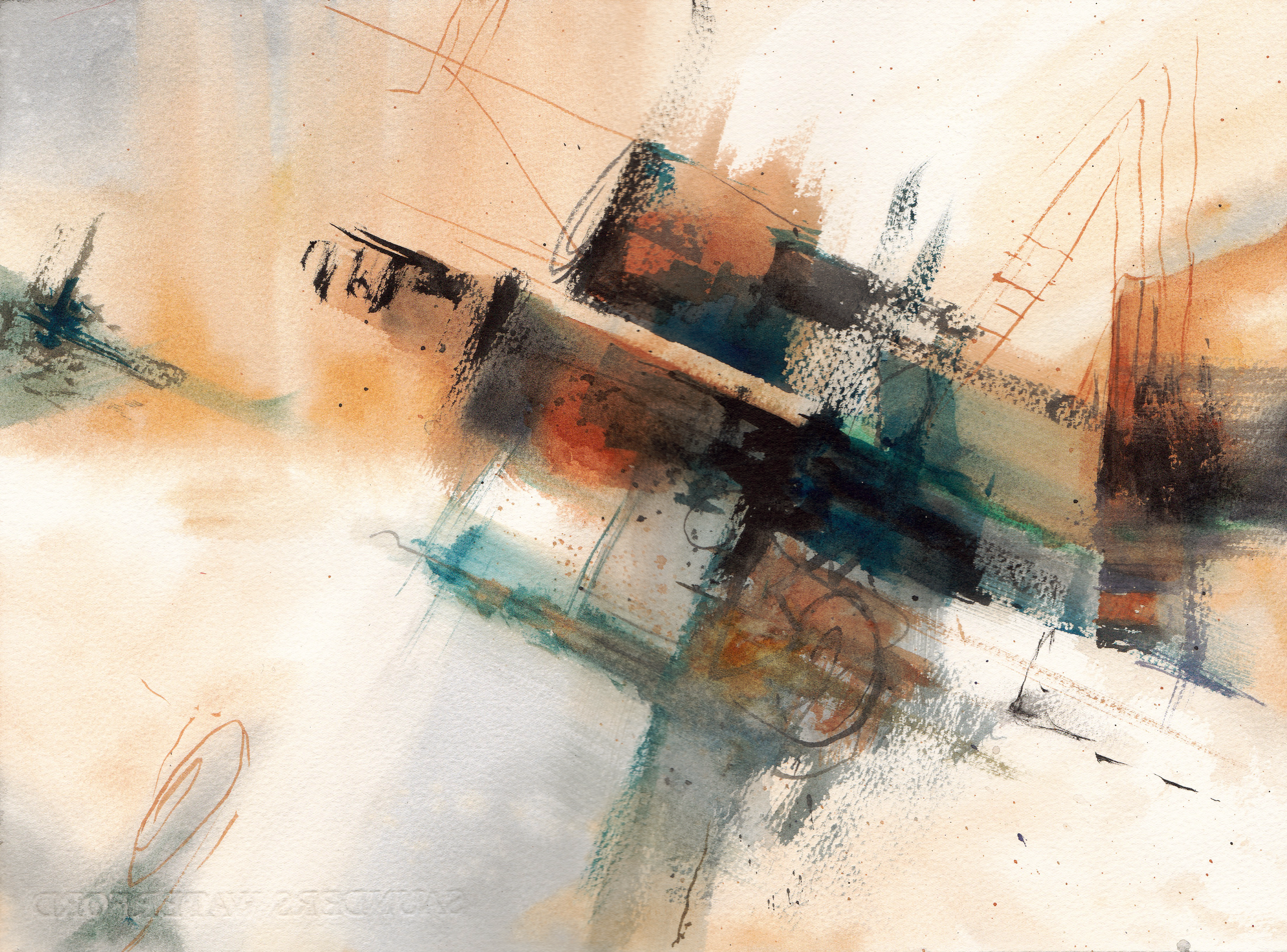 Watercolour abstract painting. 15x11" Saunders Waterford 140lb cotton paper using professional lightfast Winsor&Newton pigments. This painting is available for sale, please use the contact form for enquiries.
