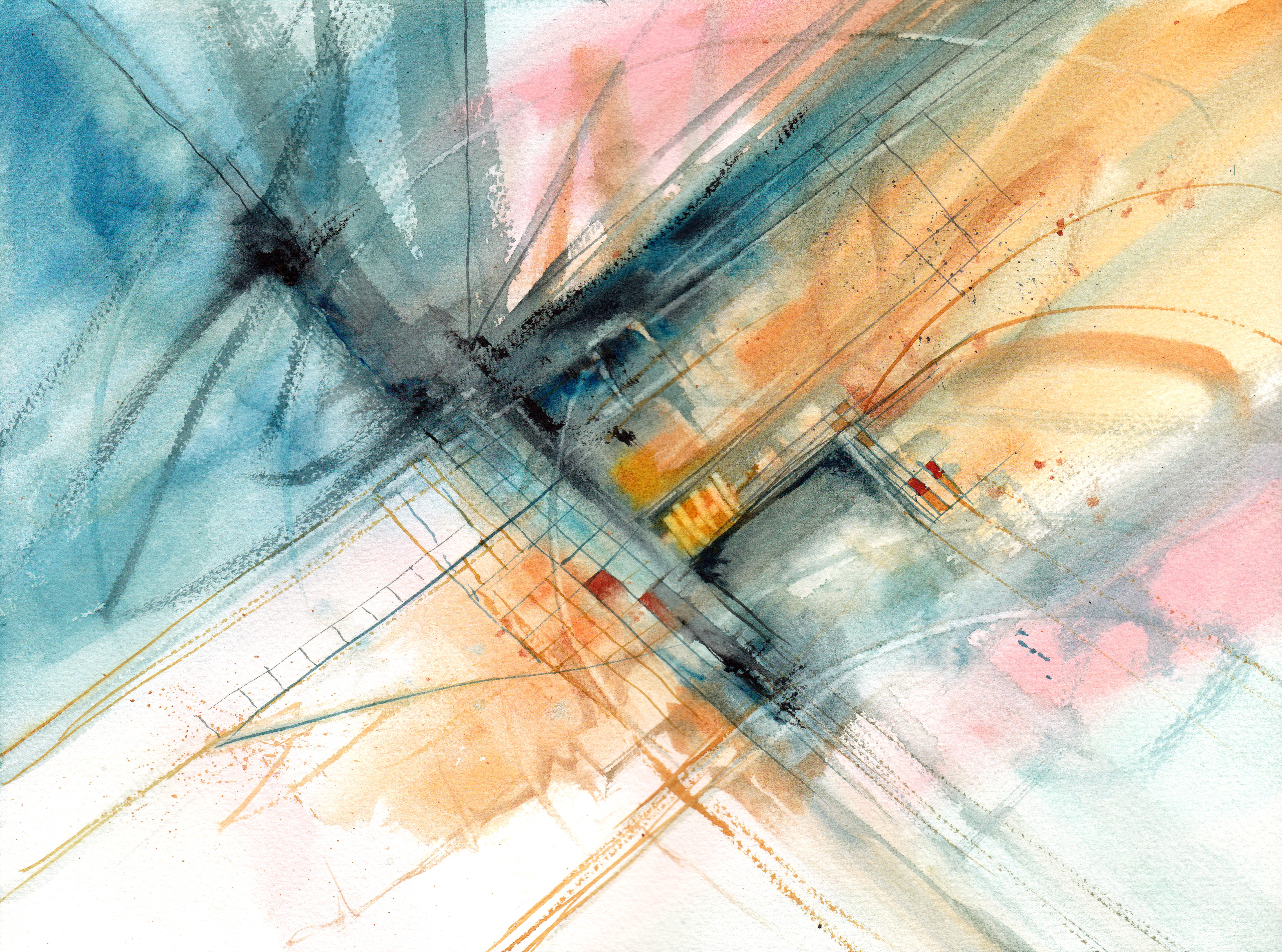 Watercolour abstract painting. 15x11" Saunders Waterford 140lb cotton paper using professional lightfast Winsor&Newton pigments. This painting is available for sale, please use the contact form for enquiries.